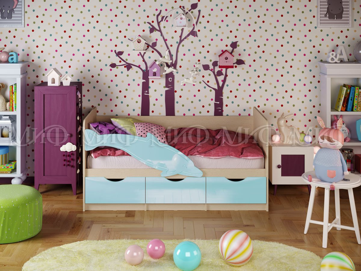 Кровать Дельфин-1 с Ящиками/Разные Цвета